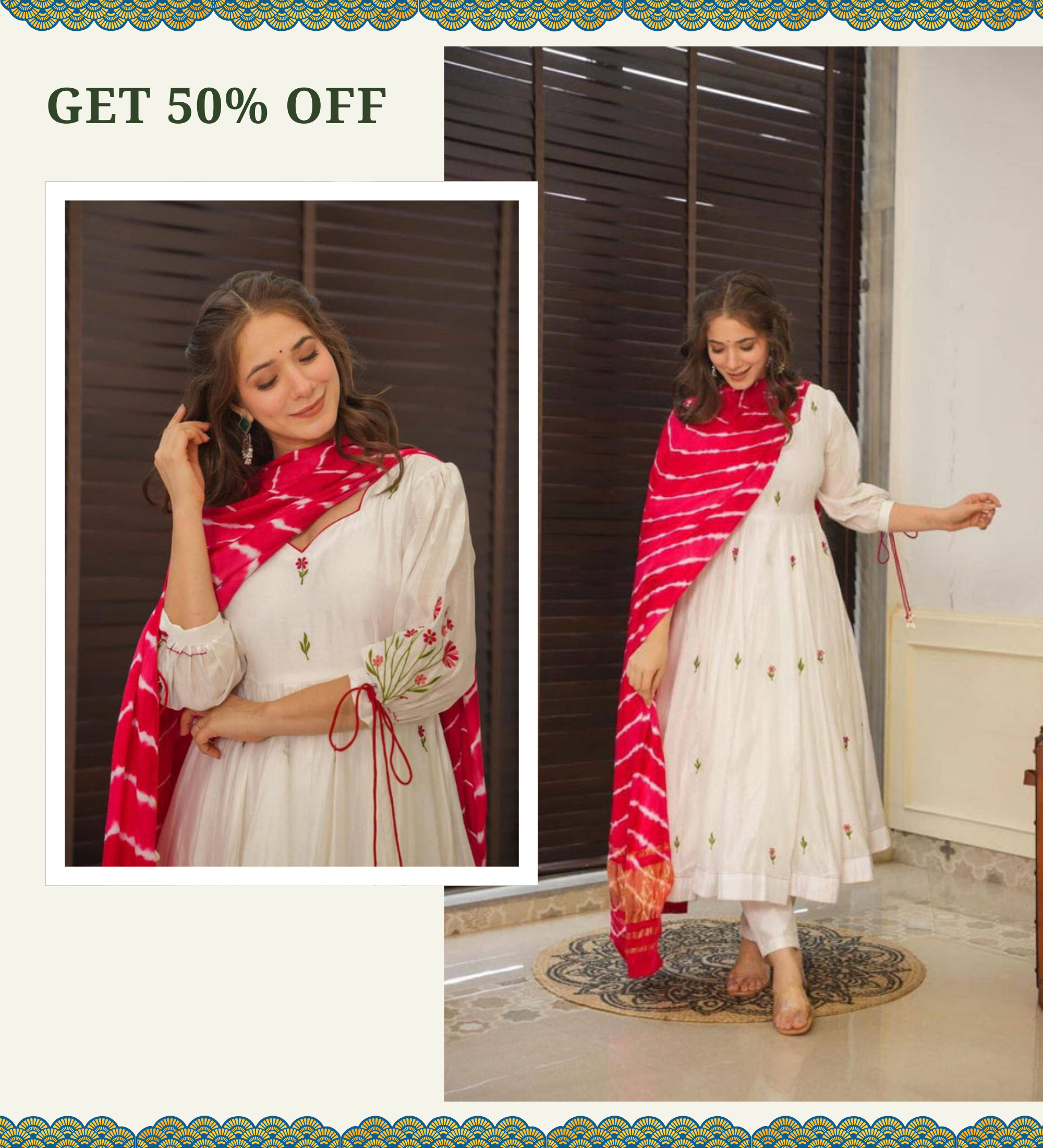 ANARKALI ROMAN SILK CHANDERI BEAUTIFUL DRESS