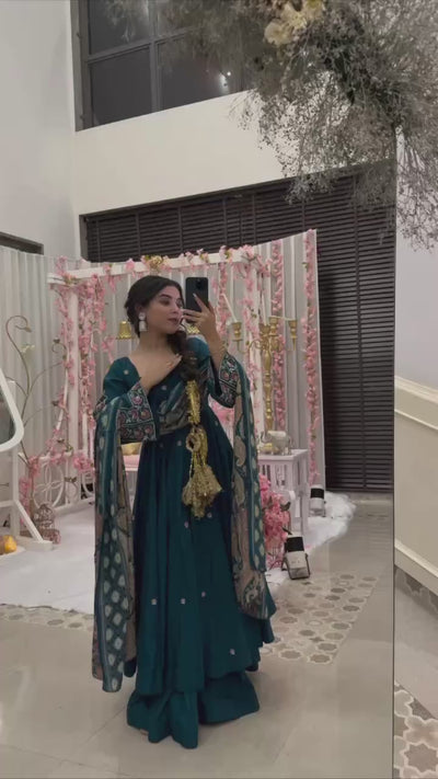 Introducing our kamli suit set with exquisite embroidery on a Chinnon kurta, complemented by a beautifully printed dupatta. Perfect for adding a touch of elegance and sophistication to any occasion.