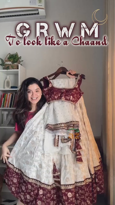 Festive Special White and maroon silk lehenga set