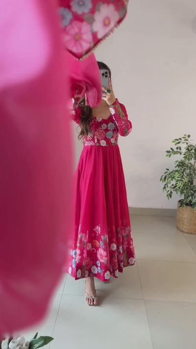 *REAL MODELING PURE SOFT ORGANJA SILK FABRIC FULLY FLAIR KALI PATTERN AND CANVAS PATTA WITH DUPPTA SET ,PENT READY TO WEAR*