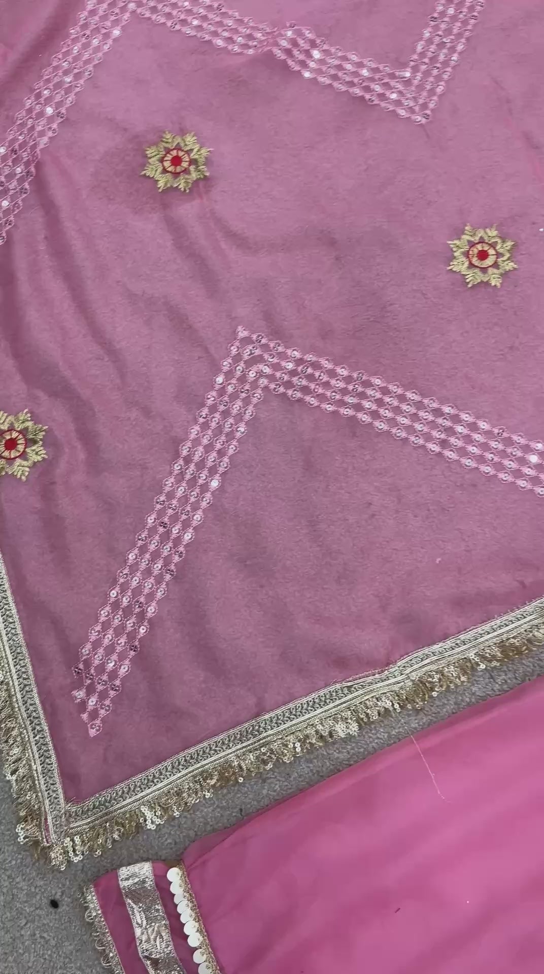 *Dupatta*: Tabby Organza With Embroidery Sequence Work with Lace Border